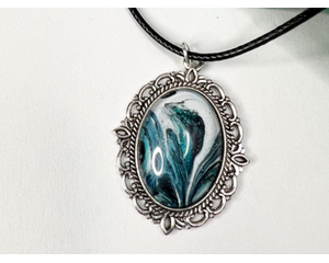 Original Handmade Fluid Art Decorative Oval Pendant Necklace ...