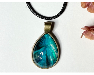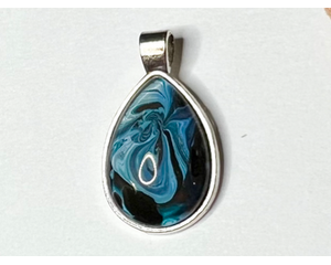 Original Handmade Fluid Art Teardrop Pendant Necklace *Blue o...