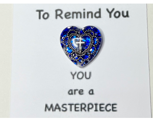 Handmade Pocket Hug Heart Blue with Decorative Silver Christ...