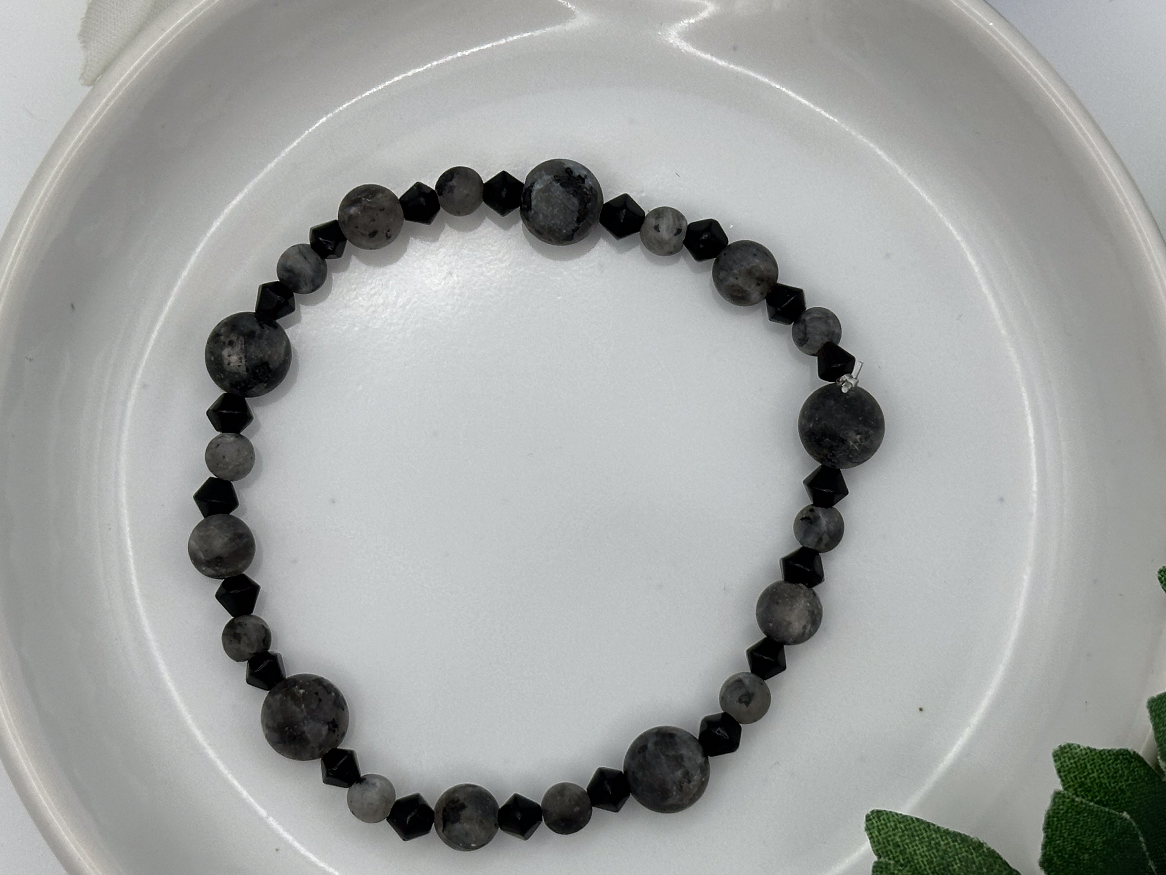 Night Quarry Bracelet – Smoky Gray Stones with Jet Faceted Accents