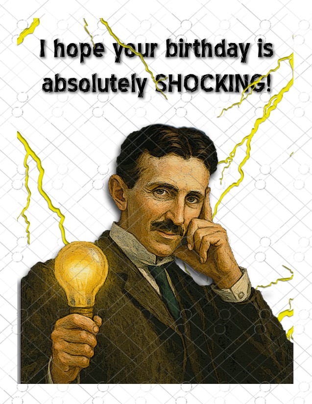 ⚡ Nikola Tesla Birthday Card – “Absolutely Shocking!” ⚡