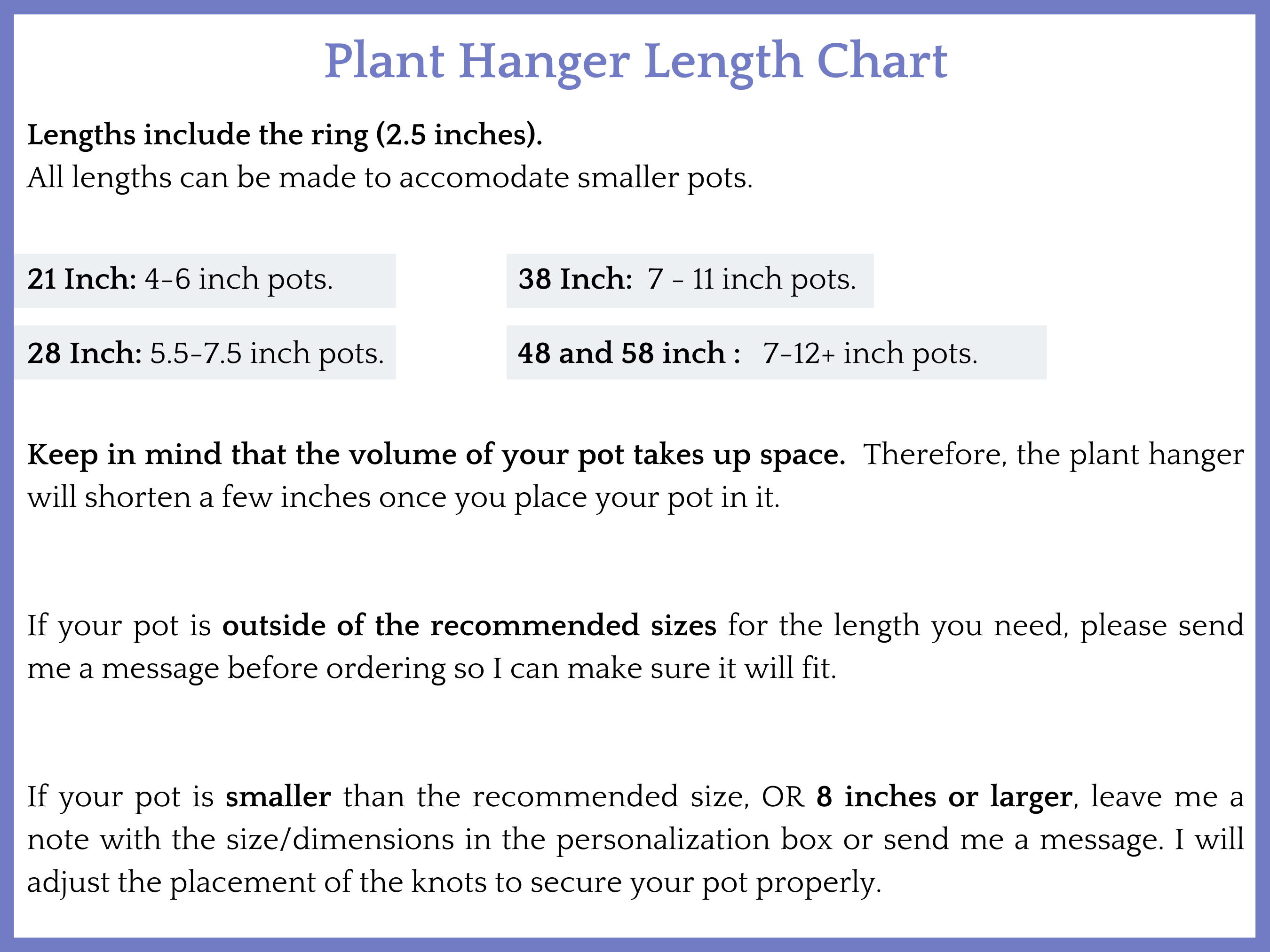 â–ºSIZES & OTHER OPTIONS All lengths can be made to secure smaller pots, just leave me a note with your pot size so I can adjust the placement of the knots.