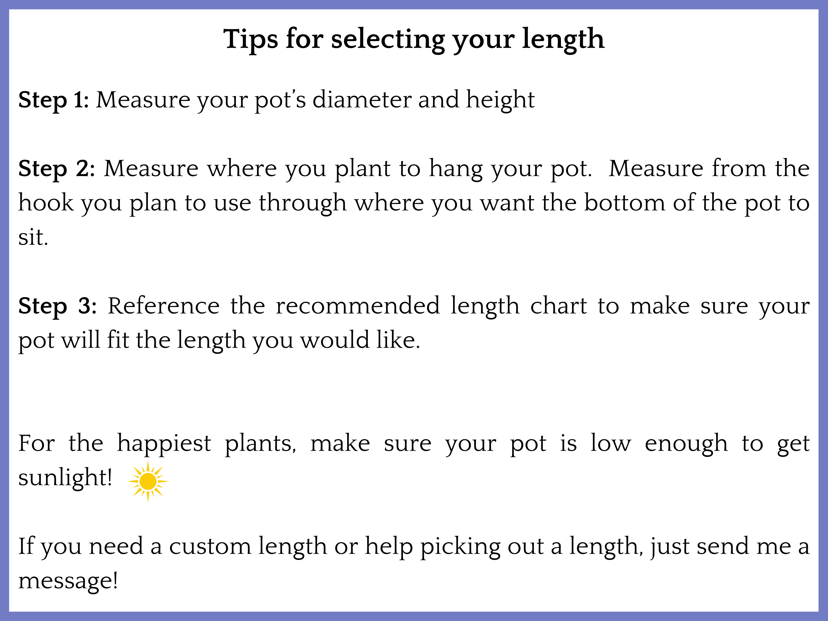 ✦ For the following lengths, if your pot is over 8 inches in diameter, please provide me with your pot dimensions so I can adjust the placement of the knots. This will ensure that your pot is secured by the knots.