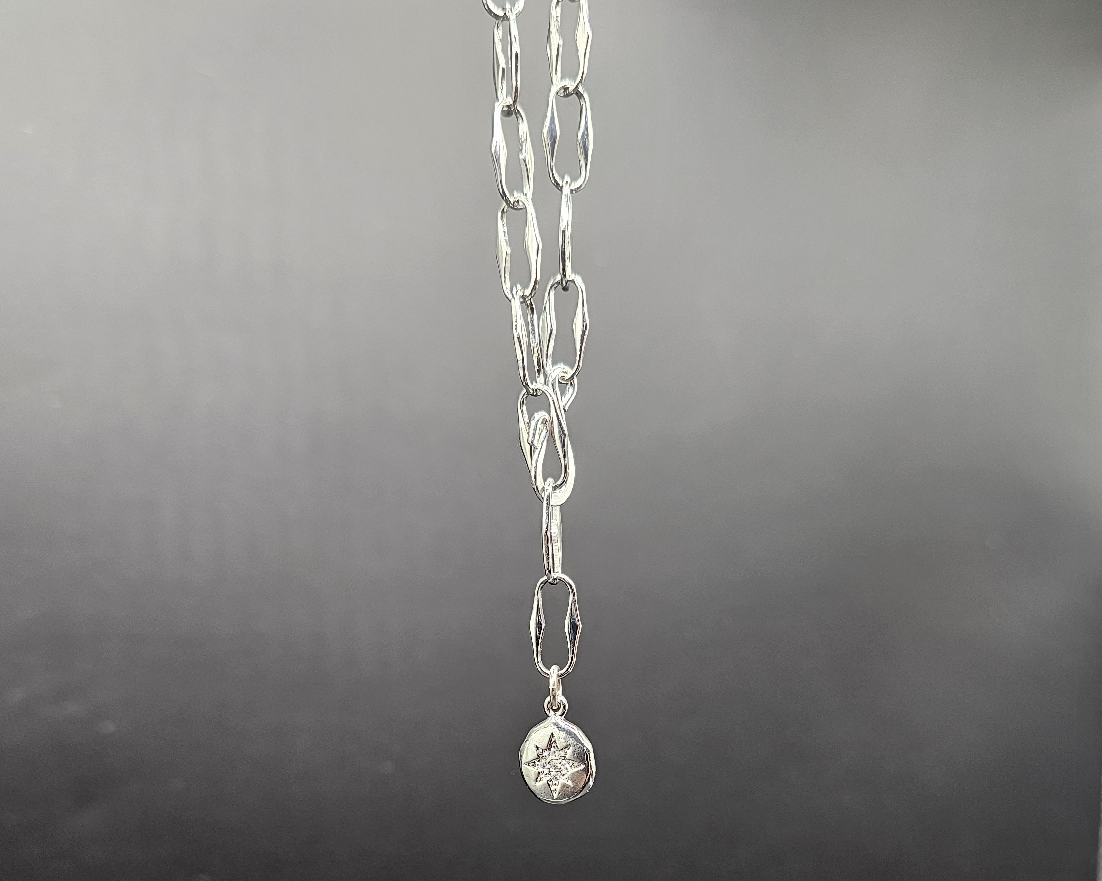Find your guiding light with this handmade North Star necklace, crafted to symbolize hope, clarity, and direction. Measuring 19 inches, the piece features a durable rhodium chain that clasps in the front, making the charm pendant the focal point.