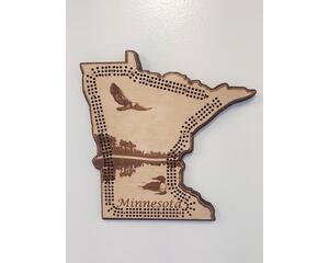 Minnesota cribbage board, laser cut wood in Minnesota shape, ...