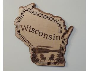 Wisconsin cribbage board, laser cut wood in Wisconsin shape, ...
