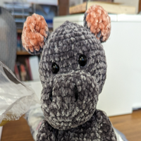 She is made with chenille yarn and filled with new poly-fil ultra plush fiber fill. She is 3.5 inches tall and 12 inches long (nose to tail). Nutmeg was lovingly made in a smoke-free, pet-friendly home using all new materials.