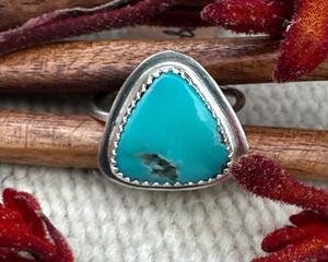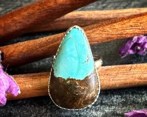 Campitos Turquoise Teardrop Ring - Sterling Silver - Size 6 1/2