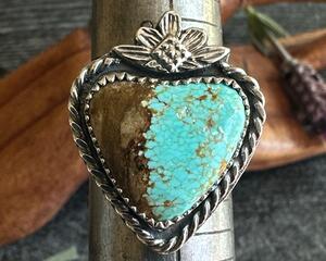 Number 8 Heart Turquoise Ring - Sterling Silver - Size 8 1/2