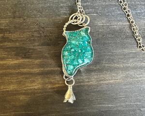 Crushed Royston Turquoise Owl Necklace with Sterling Silver S...