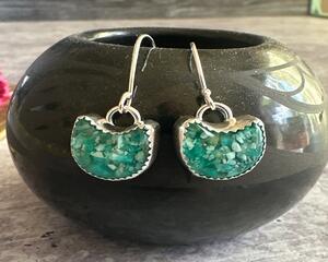 Crushed Royston Turquoise Cat Dangle Earrings - Sterling Silver