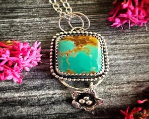Tyrone Turquoise Square Pendant Necklace with Flower Charm | ...