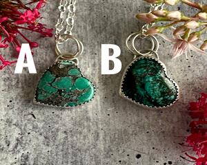 Hubei Turquoise and Sterling/Fine Silver Heart Pendant Neckla...