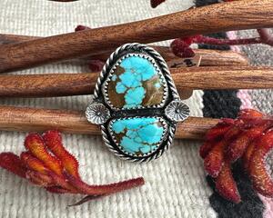Number 8 Turquoise Two-Stone Ring - Sterling Silver - Size 8...
