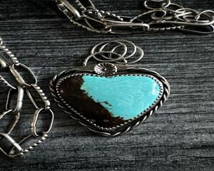 Number 8 Turquoise Heart Pendant and Hand-Forged Paperclip Ch...
