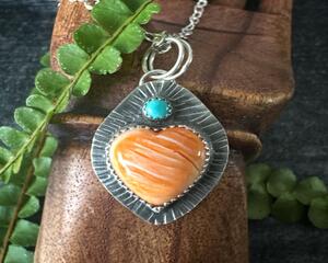 Orange Spiny Oyster Shell and Kingman Turquoise Sacred Heart ...