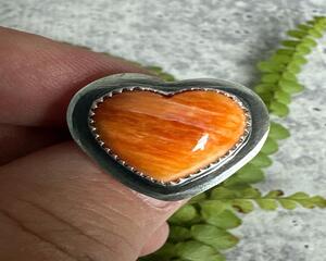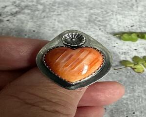 Orange Spiny Oyster Shell Heart Ring - Sterling - Adjustable