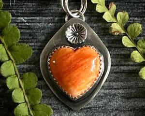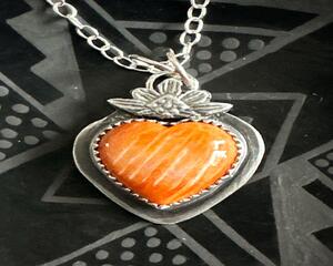 Orange Spiny Oyster Shell Sacred Heart Necklace - Sterling