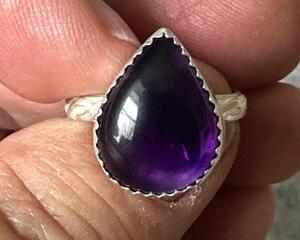Purple Amethyst Teardrop Ring - Sterling Silver - Size 8 1/4