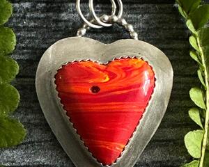 Red and Yellow Swirl Rosarita Heart Pendant Necklace - Sterli...
