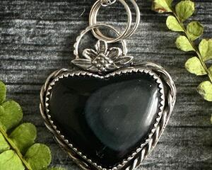 Silver Sheen Obsidian Sacred Heart Necklace - Sterling Silver