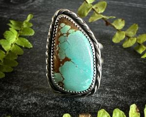 Number 8 Teardrop Turquoise Ring - Sterling Silver - Adjustable