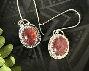 Oval Pink Tourmaline Dangle Earrings - Sterling Silver