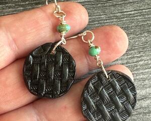Small Round Black Basketweave Leather and Kingman Turquoise D...