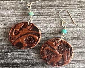 Round Brown Leather and Kingman Turquoise Drop Earrings - Han...