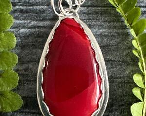 Red Teardrop Rosarita Heart Necklace - Sterling Silver