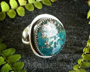 Blue Turquoise and Pyrite Statement Ring - Sterling Silver - ...
