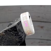 This titanium ring features a textured sparkling blue chameleon pigment channel mimicking moving water, topped with teeny tiny fish hooks. Available in 6mm and 8mm widths.