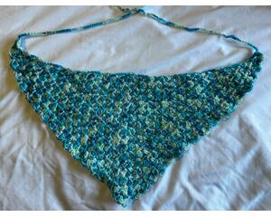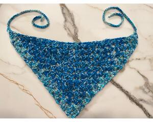 Embrace the beauty of the sea with this stunning ocean blue wool bandana, handmade using luxurious, hand-dyed superwash merino wool. Featuring a classic granny triangle design with an elegant scalloped border, this bandana is both soft and durable, offering a cozy yet lightweight accessory perfect for any season. Whether you wear it around your neck or as a stylish headscarf, the vibrant blue hues evoke a calming, oceanic vibe, making it a versatile and eye-catching addition to your wardrobe.