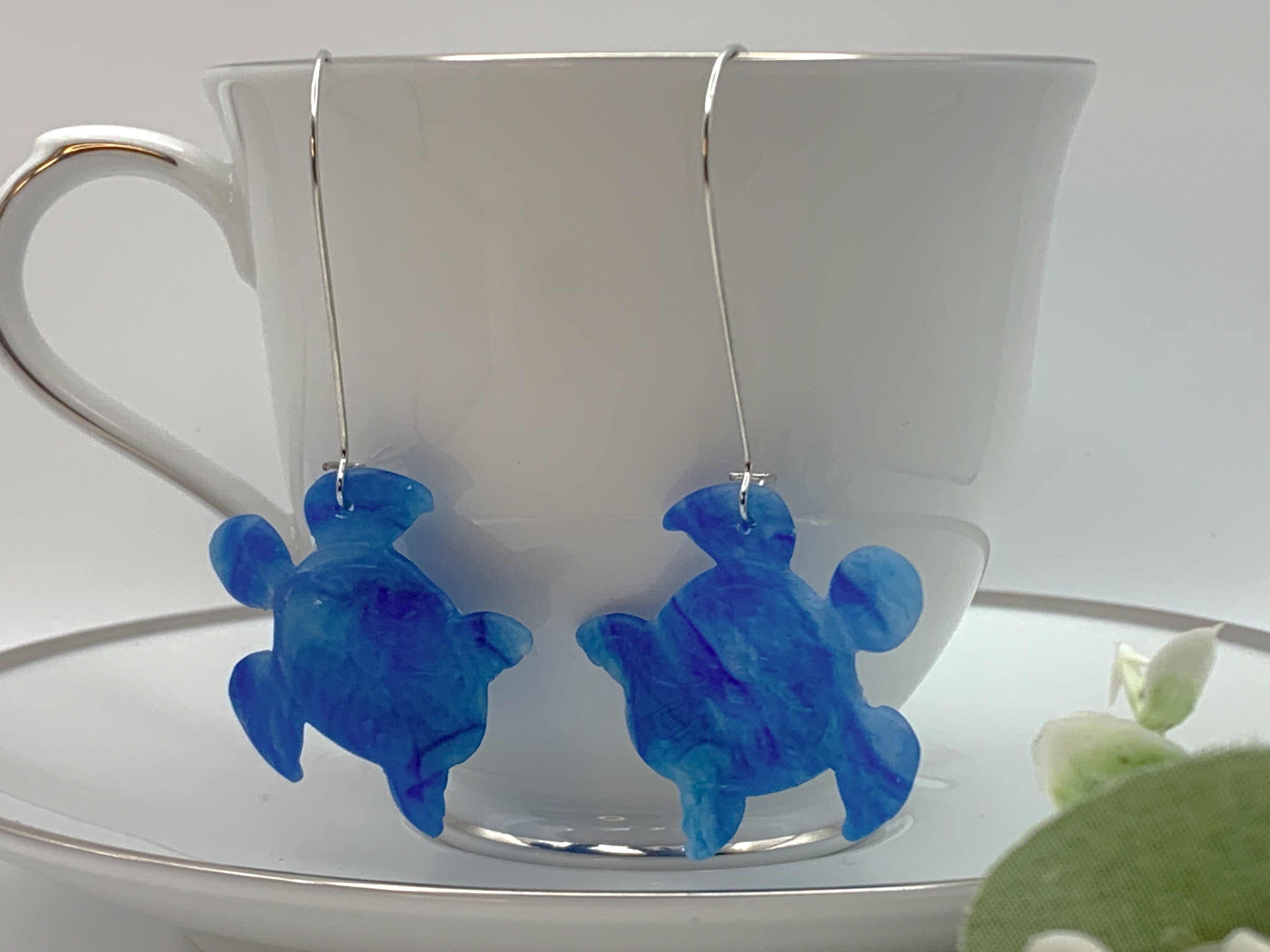 These adorable sea turtle earrings in swirling shades of blue bring the beauty of the ocean to your look. Lightweight and full of coastal charm!