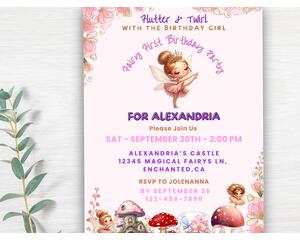 Fairy Birthday Invitation, Editable Girls Fairy First Birthda...