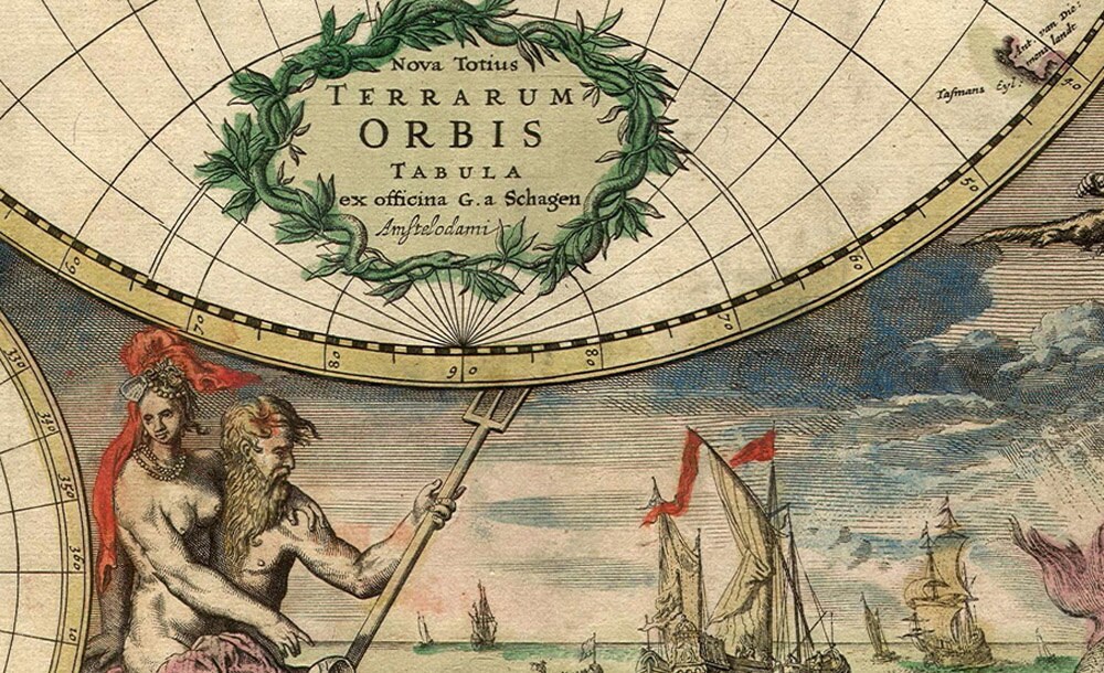 Old World Map Large VINTAGE world map HISTORIC 1689 antique Old World Copper Plate Style Map wall art housewarming gift Fine Art Print