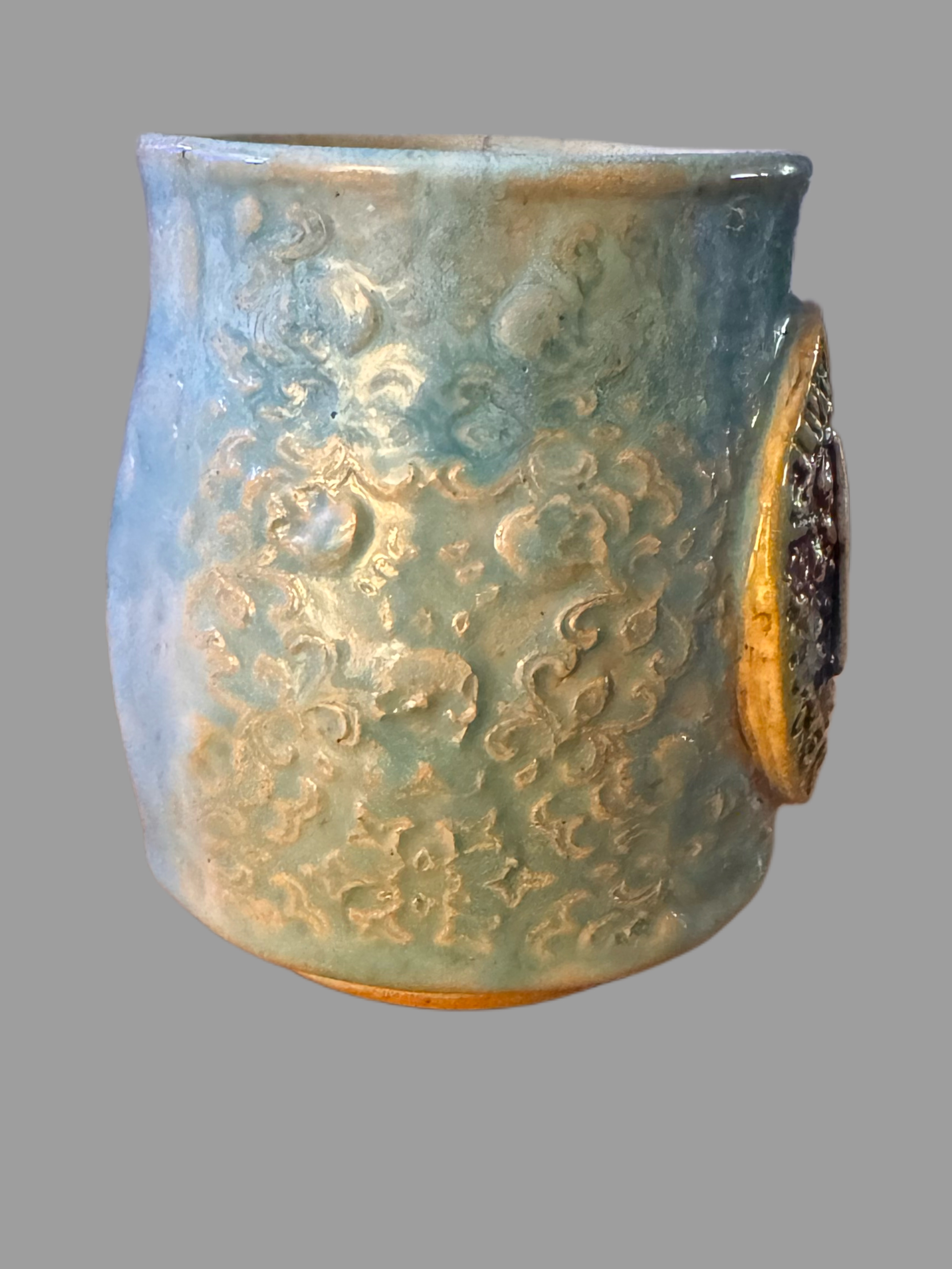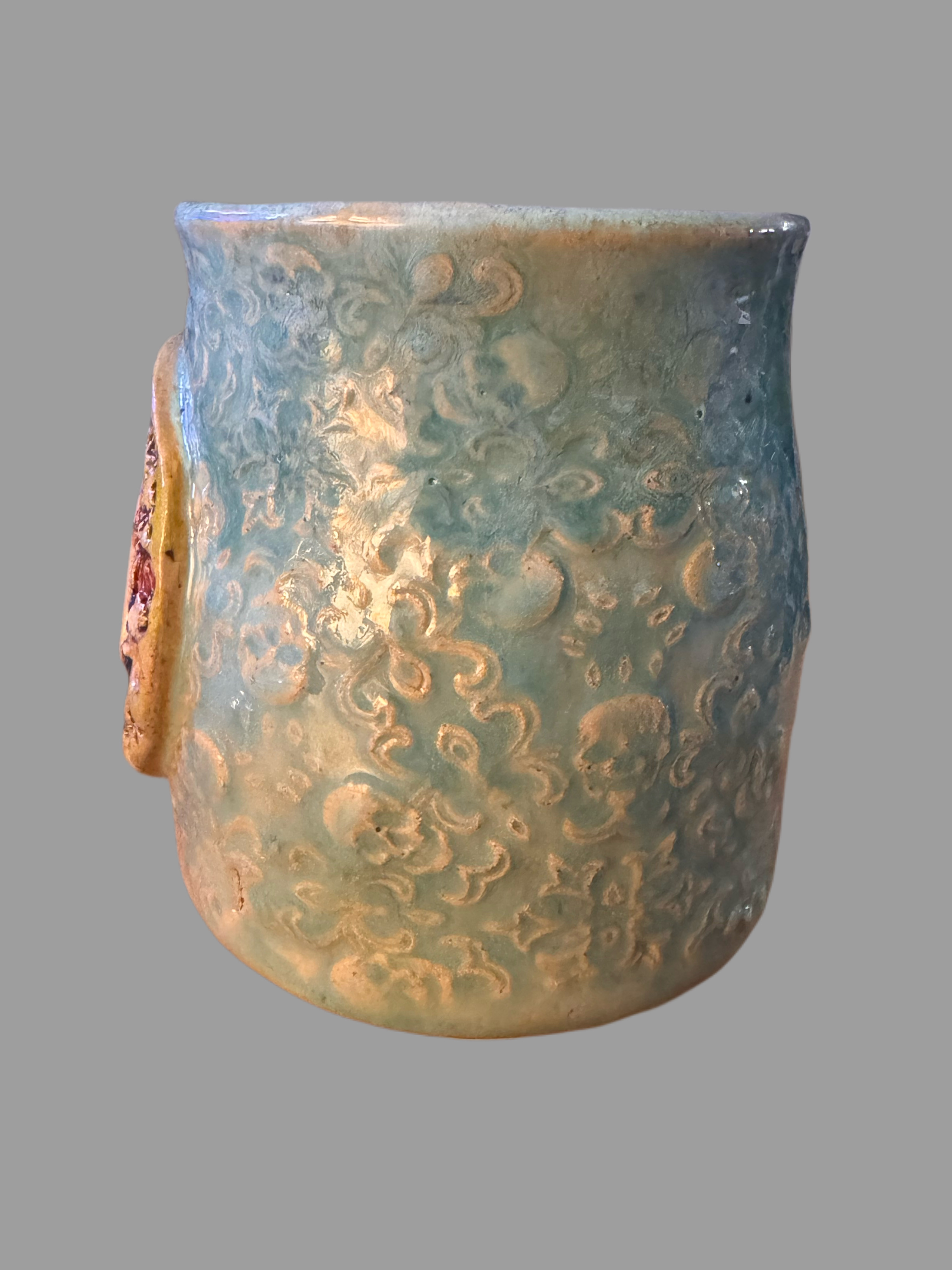 Adorned with a detailed ghost medallion and playful lettering pressed into clay.