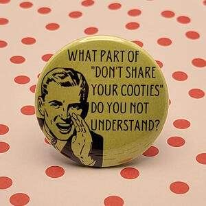 Includes one 1.5" (2.54cm, 25.4mm) pinback button badge or magnet.