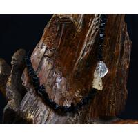 These necklaces are available in 18, 20, 22, and 24 inches, in matte or polished onyx, and have several accent options to choose from: Faceted, Matte, Polished, striped (matte with a polished stripe), Obsidian, and Black Tourmaline. Each necklace is made to order and packed and shipped with both speed and care.