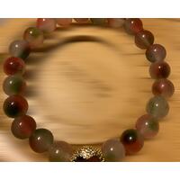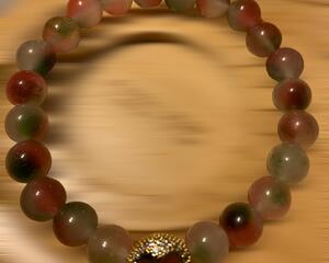 introducing my handmade wire wrap bracelet, showcasing the beauty of 8mm opalite stones. Each bead is meticulously wire-wrapped with 28 gauge gold craft wire, enhancing its luminous appeal. The design is complemented by a heart shape clasp and charming flower dangle.