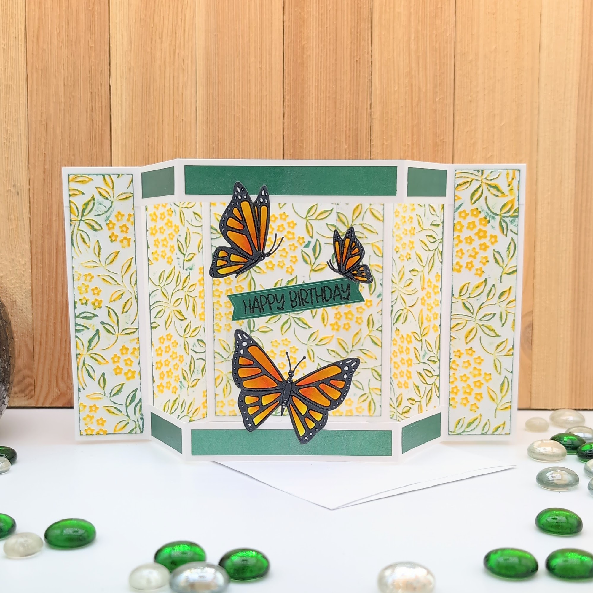 This handcrafted “open bay window card” brings birthday joy to life with layered panels, vibrant butterflies, and sunny floral swirls. The dimensional structure creates a pop-out effect that feels festive and full of movement. Blank inside for your personal message, it’s perfect for birthdays of all ages—whether you're celebrating a milestone or sending a cheerful hello. A keepsake-worthy design for anyone who loves handmade artistry and bright, uplifting details.
