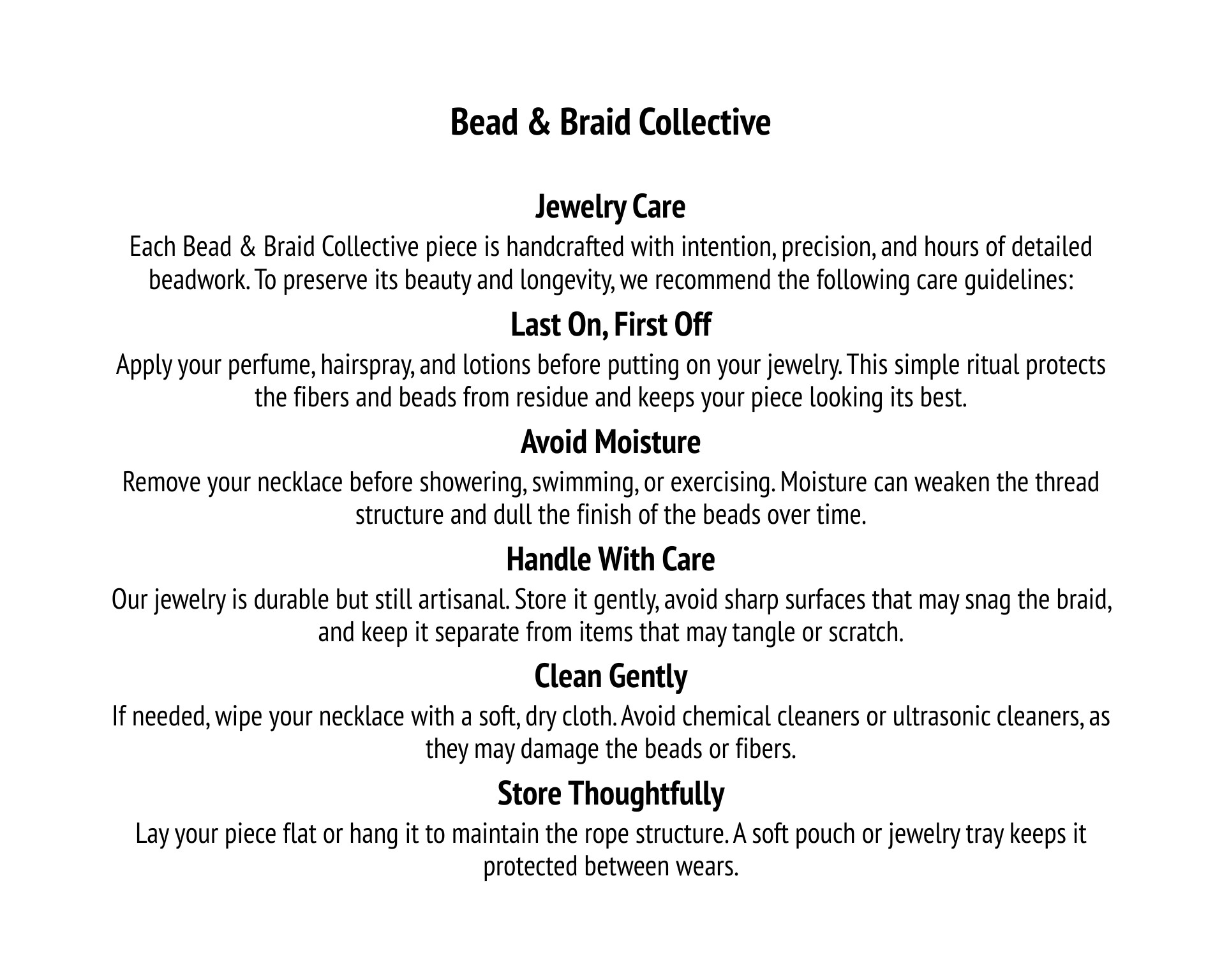 Intellectual Property All product images, designs, descriptions, branding, and logos are the property of Bead & Braid Collective and may not be used or reproduced without permission.