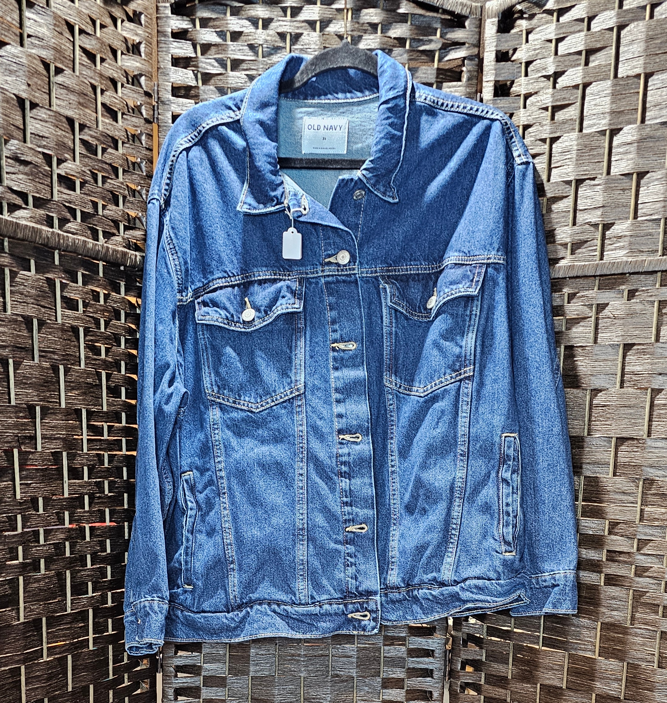 This is a New refashioned Old Navy Jacket 3X that has a been Refashioned with a panel. 30 inches across pit to pit. 23.5 inches long from top of shoulder to bottom.