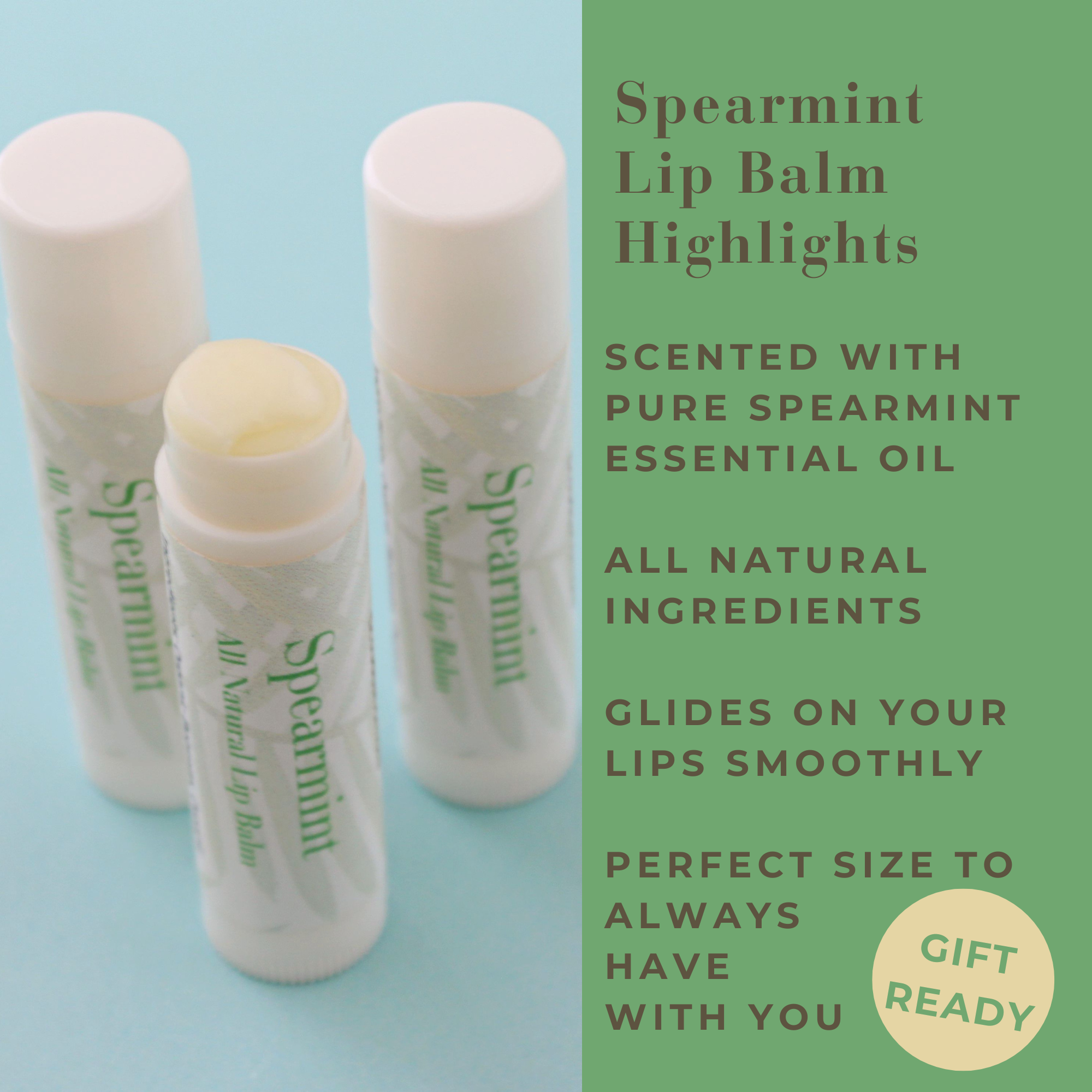 Experience the natural comfort of our Organic Spearmint Balm, a natural care lip treatment crafted with pure essential oil and all natural ingredients for lasting protection year round. This versatile stick protection comes as a delightful gift beauty product, featuring a refreshing spearmint scent that makes it perfect for daily use.