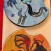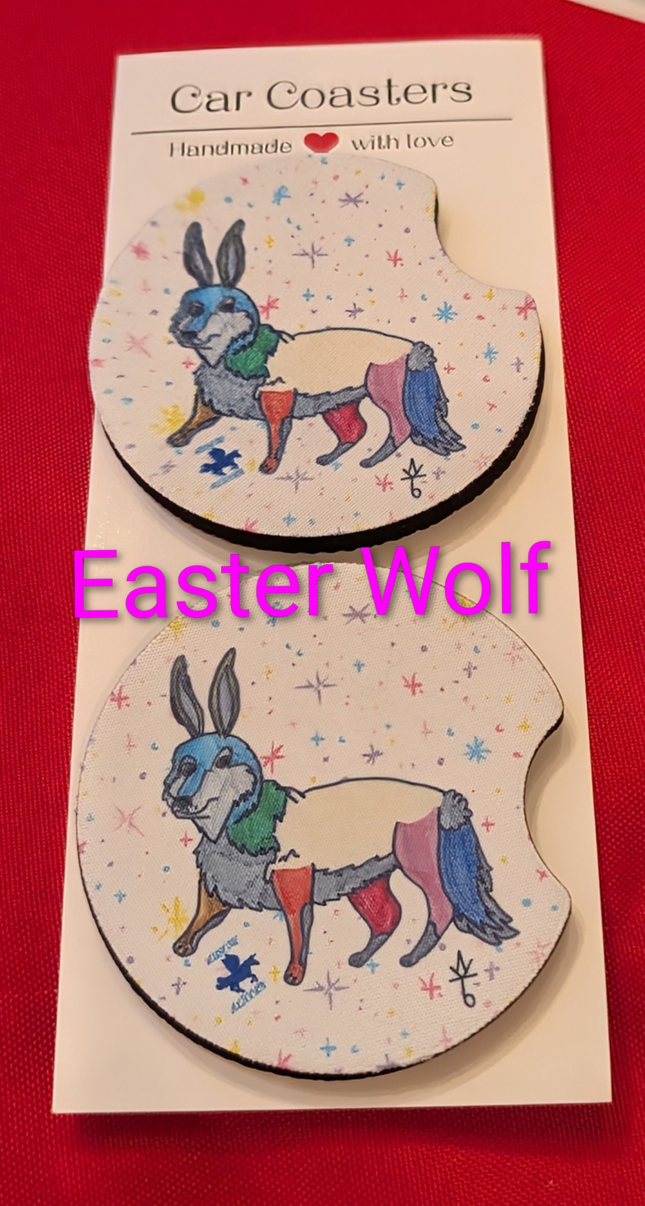 I do not make the car coaster blanks but the designs on them are mine. Each one has its design added in our home studio using a sublimation dye heat transfer of my original designs. Since these are pressed by me or my family, they may have minor imperfections. We are getting better with each item we make!