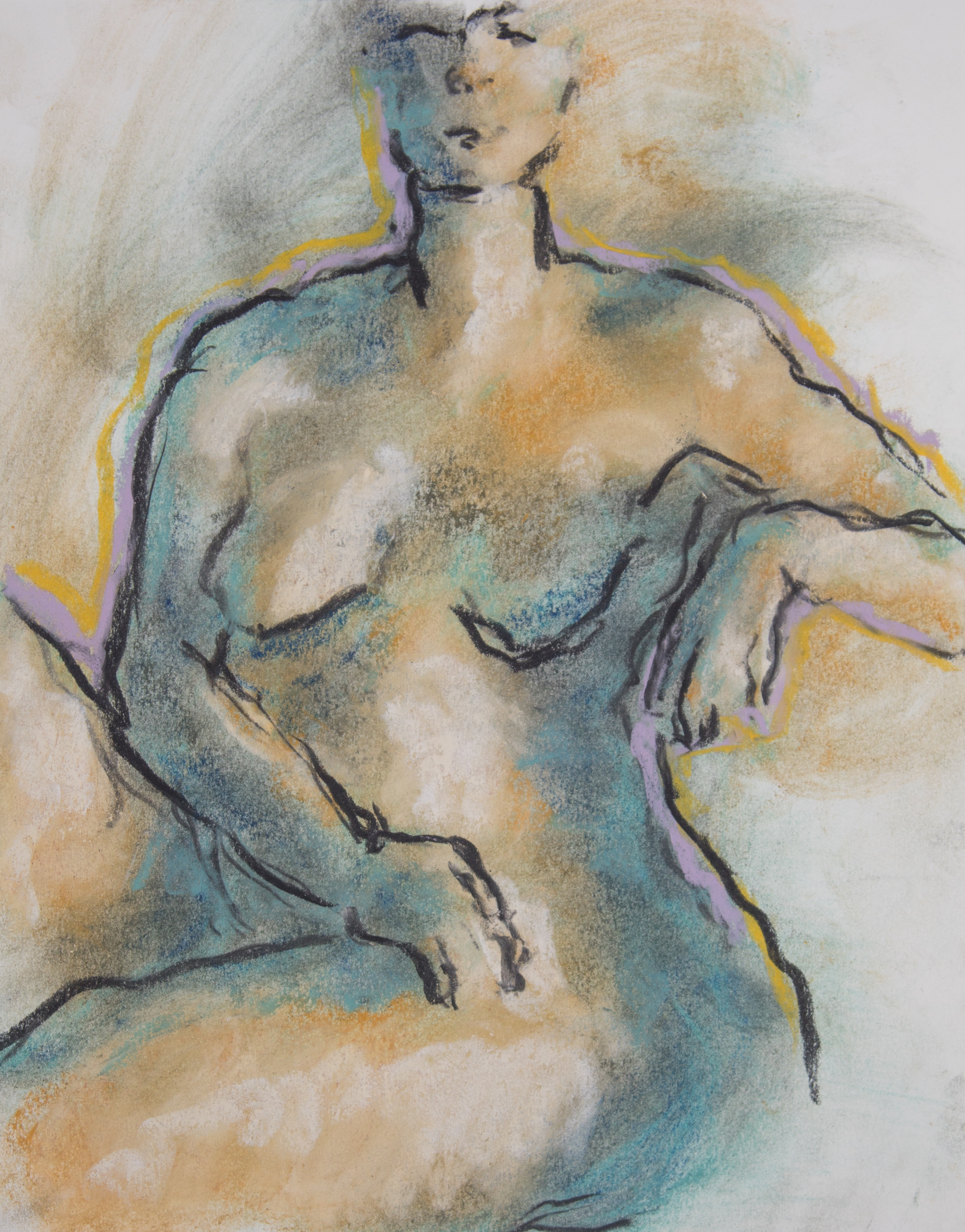 Drawing is of nude female done in charcoal and pastel on white drawing paper.
