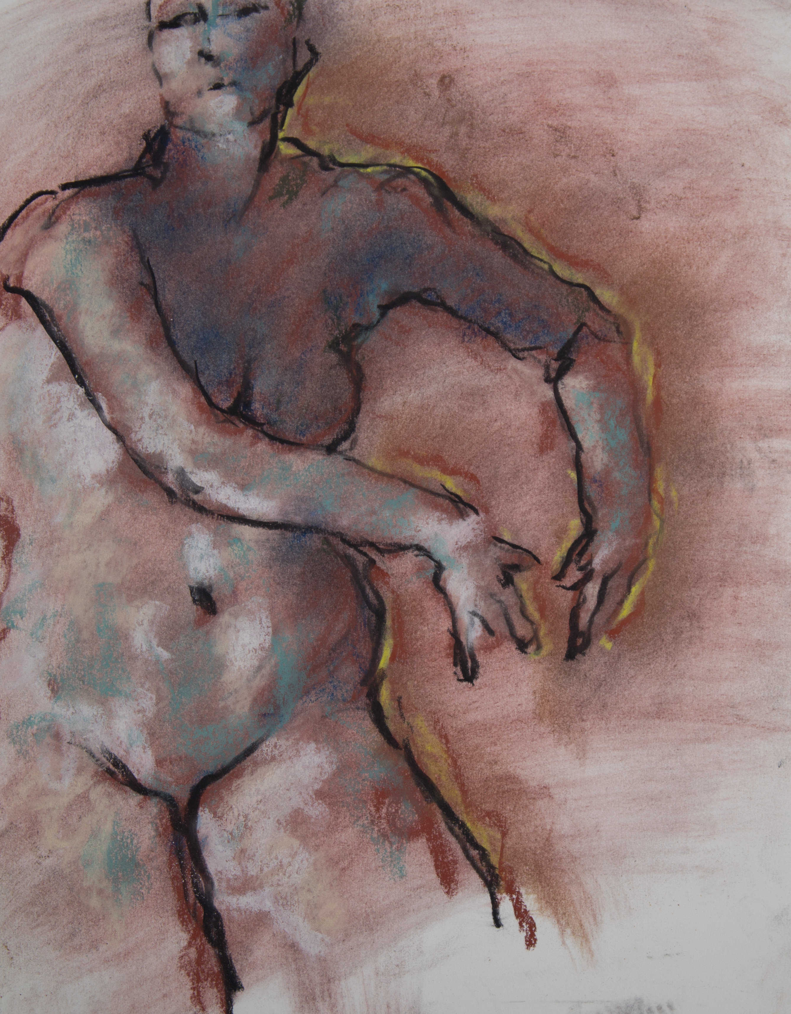Drawing is of nude female done in charcoal and pastel on white drawing paper.