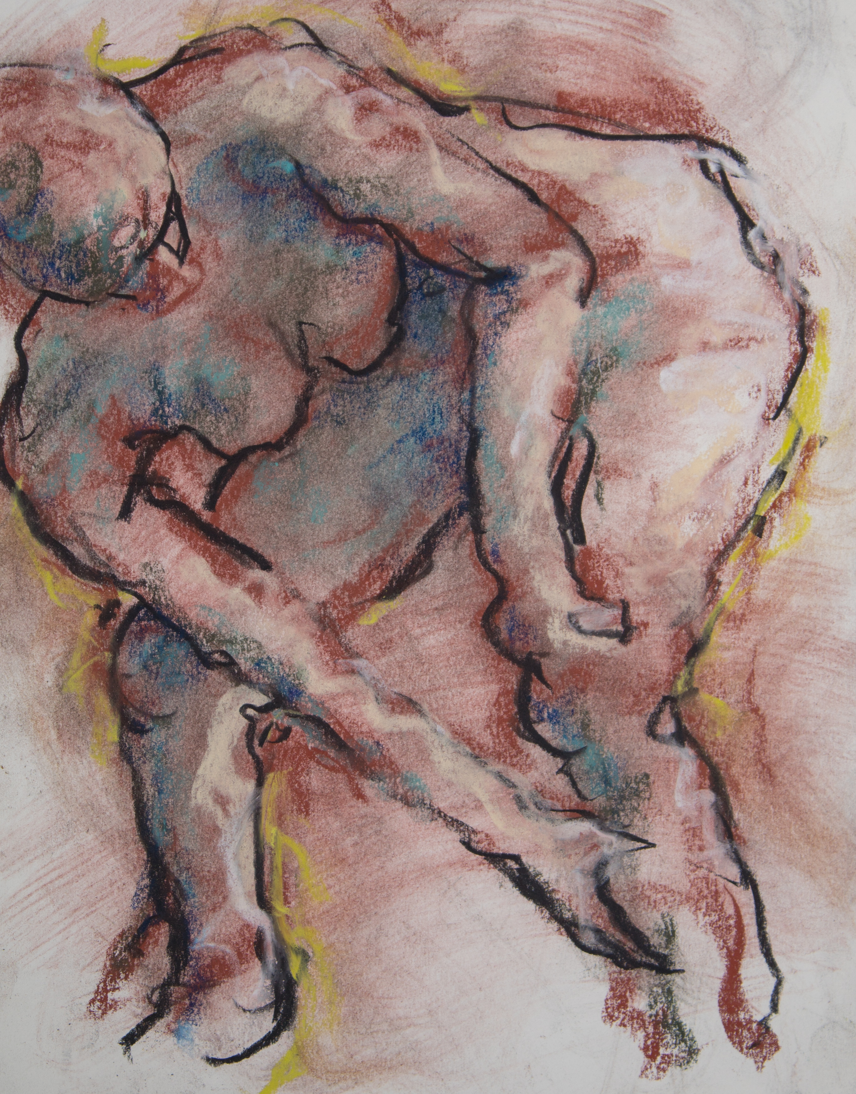 Drawing is of nude female done in charcoal and pastel on white drawing paper.