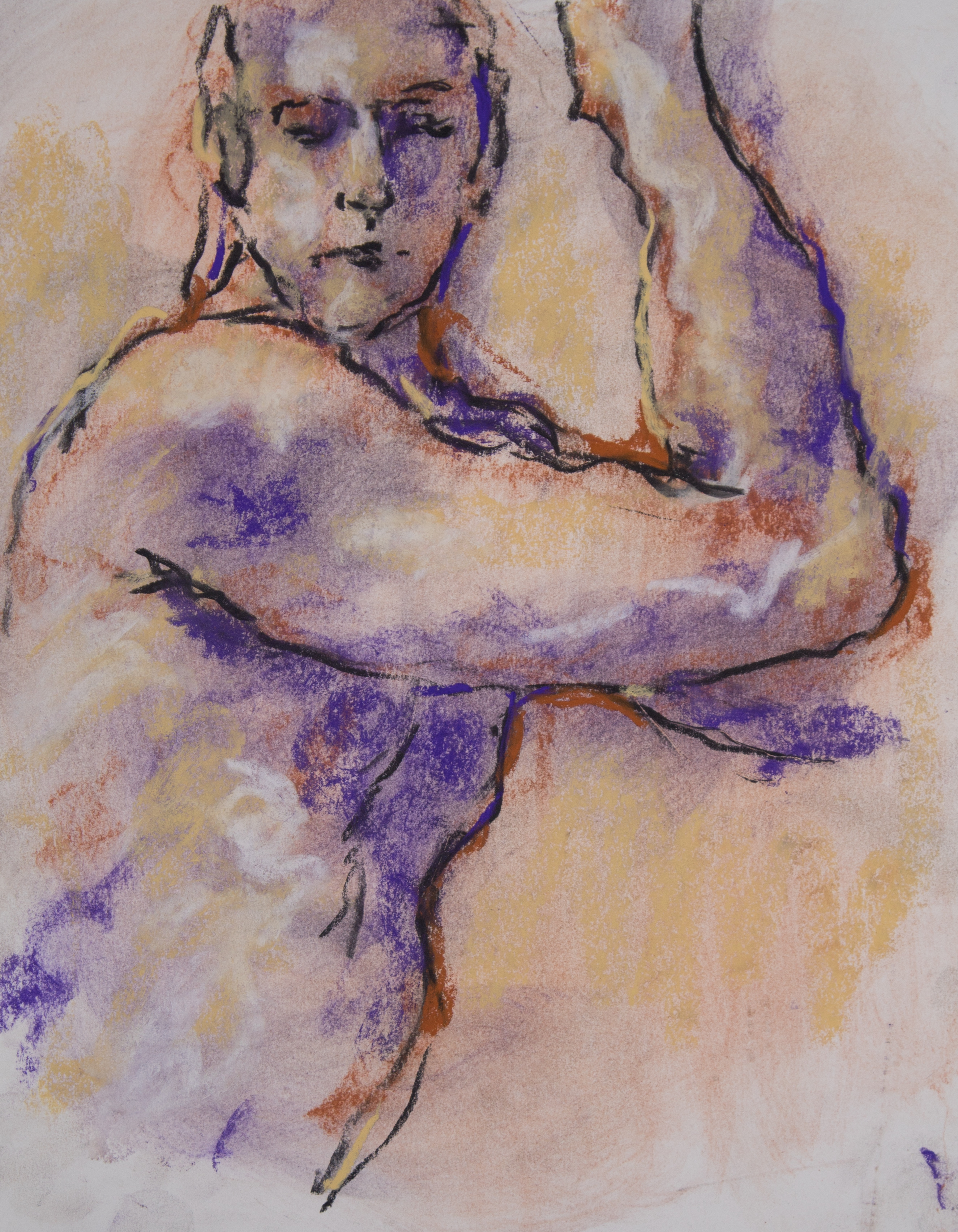 Drawing is of nude male done in charcoal and pastel on white drawing paper.