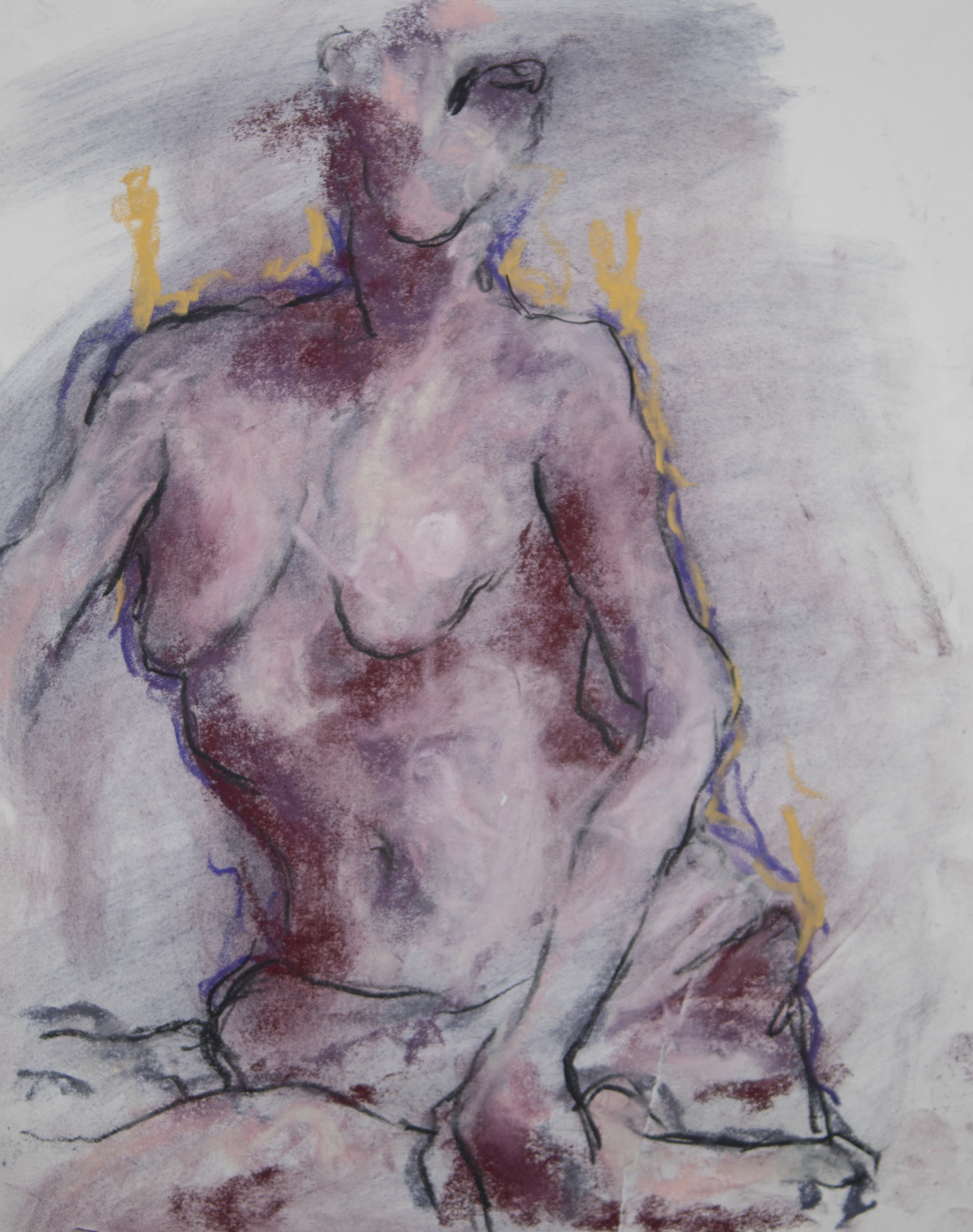 Drawing is of nude female done in charcoal and pastel on white drawing paper.